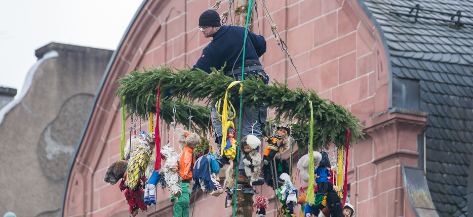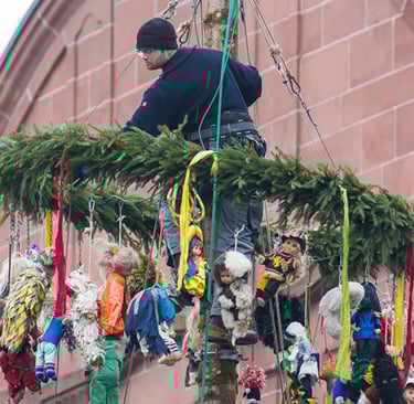 In diesem Sinne ist auch der Narrenbaum zu sehen, der in Lörrach drei Wochen lang von der Fasnacht in der Stadt kündet.